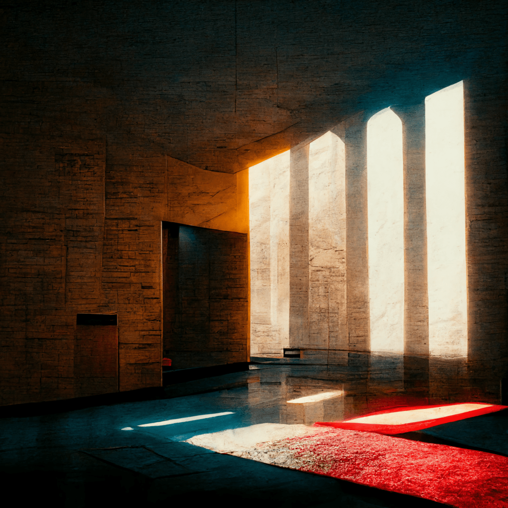 Although this work is clearly the descendant of a long history of antiphonal brass pieces, it has little in common with Gabrieli. First, rather than positioning themselves into two or three antiphonal groups, the performers are isolated both spatially and musically. The work begins and ends with long solo by the principal trumpet. Rather like the sorcerer’s apprentice, the soloist whips the other players into an flurry of activity before gradually losing all control. Gestures are passed around from player to player. Every member of the ensemble must take part in conducting duties, cuing each other from across the space.
